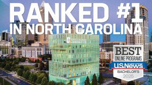 UNC Charlotte is ranked No. 1 in North Carolina and tied for No. 3 in the nation for online bachelor’s degrees according to U.S. News & World Report rankings. The ranking reflects the quality of UNC Charlotte’s 10 fully online bachelor’s degree completion programs.