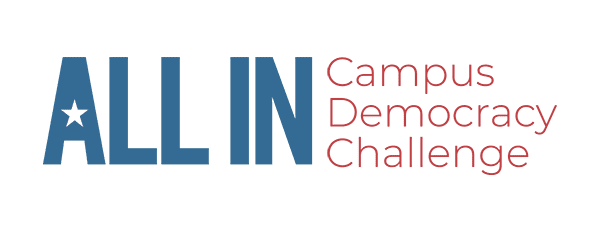 The ALL IN Campus Democracy Challenge empowers colleges and universities to achieve excellence in nonpartisan student civic engagement. With the support of the ALL IN staff, campuses that join the ALL IN Campus Democracy Challenge complete a set of action items to institutionalize nonpartisan civic learning, voter participation and ongoing engagement in our democracy on their campus. The ALL IN Campus Democracy Challenge engages more than 1,000 institutions enrolling over 10 million students in all 50 states and the District of Columbia.
