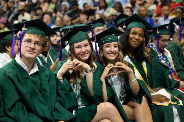 These graduates show their love for Charlotte at Friday afternoon’s ceremony.
