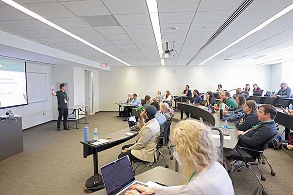 Back by popular demand were “lightning sessions,” 15-minute presentations by faculty members that captured the lessons they’d learned using AI as part of their coursework, labs and assessments. Attendees chose from 25 lighting sessions and workshops on AI curriculum, disciplinary use cases, research, ethics and productivity.
