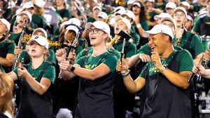 Before marching band practice begins, the sound is clamorous. Arriving in a steady stream, musicians huddle in instrumental groups —…